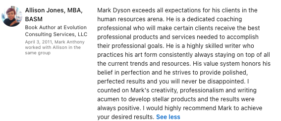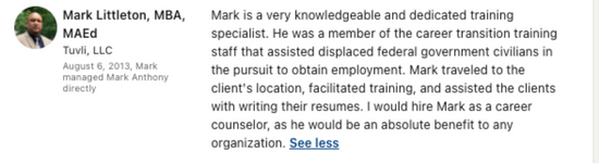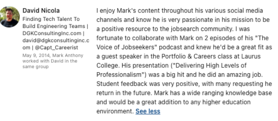 - My career advice is cited in and contributor to several careers and job search-centered books.