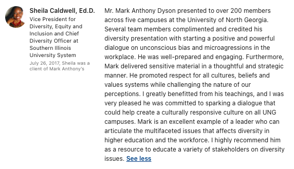 - Presented to organizations such as Bradley University, Fort McPherson, Fort Eustis, North Georgia University, Career Thought Leaders, New York Urban League, Toronto Jobs, and Prairie State College.